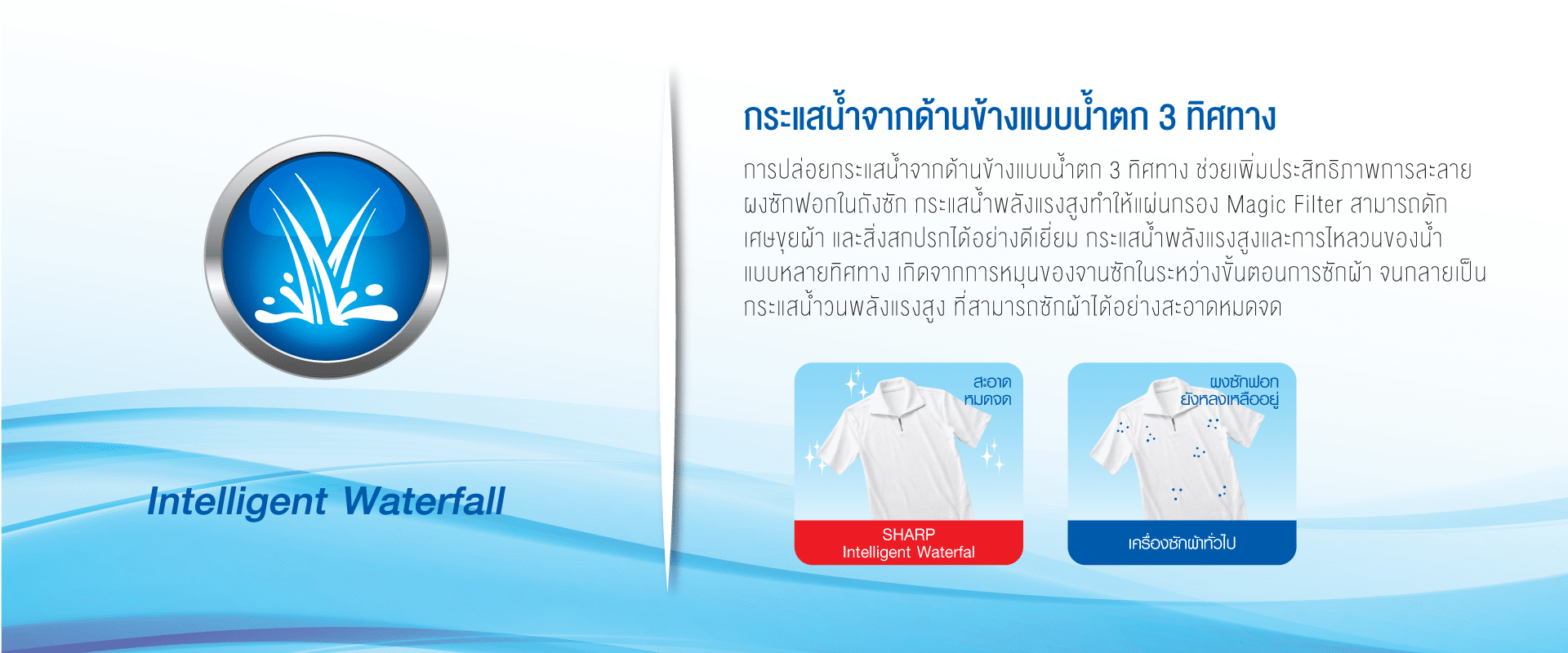 – การหมุนของการซักช่วนสร้างกระแสน้ำวนแบบ 3 มิติ ๙งสามารถขจัดคราบสกปรกออกจากเนื้อผ้า