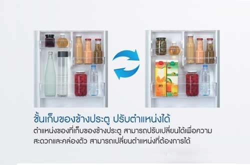 ตำแหน่งของที่เก็บของข้างประตู สามารถปรับเปลี่ยนได้เพื่อความสะดวกและคล่องตัว สามารถเปลี่ยนตำแหน่งที่ต้องการได้