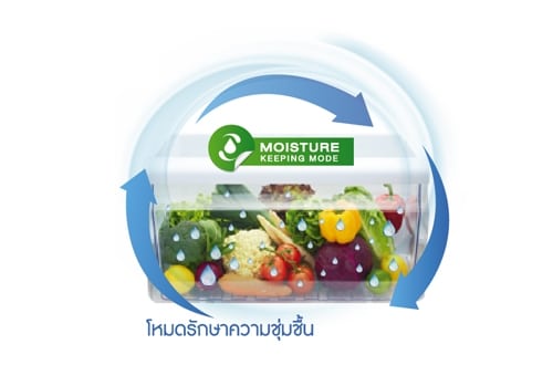 - โหมดรักษาความชุ่มชื้นที่ส่งลมเย็นกระจายโดยรอบ สามารถรักษาความชุ่มชื้นของผัก ได้มากถึง 90%