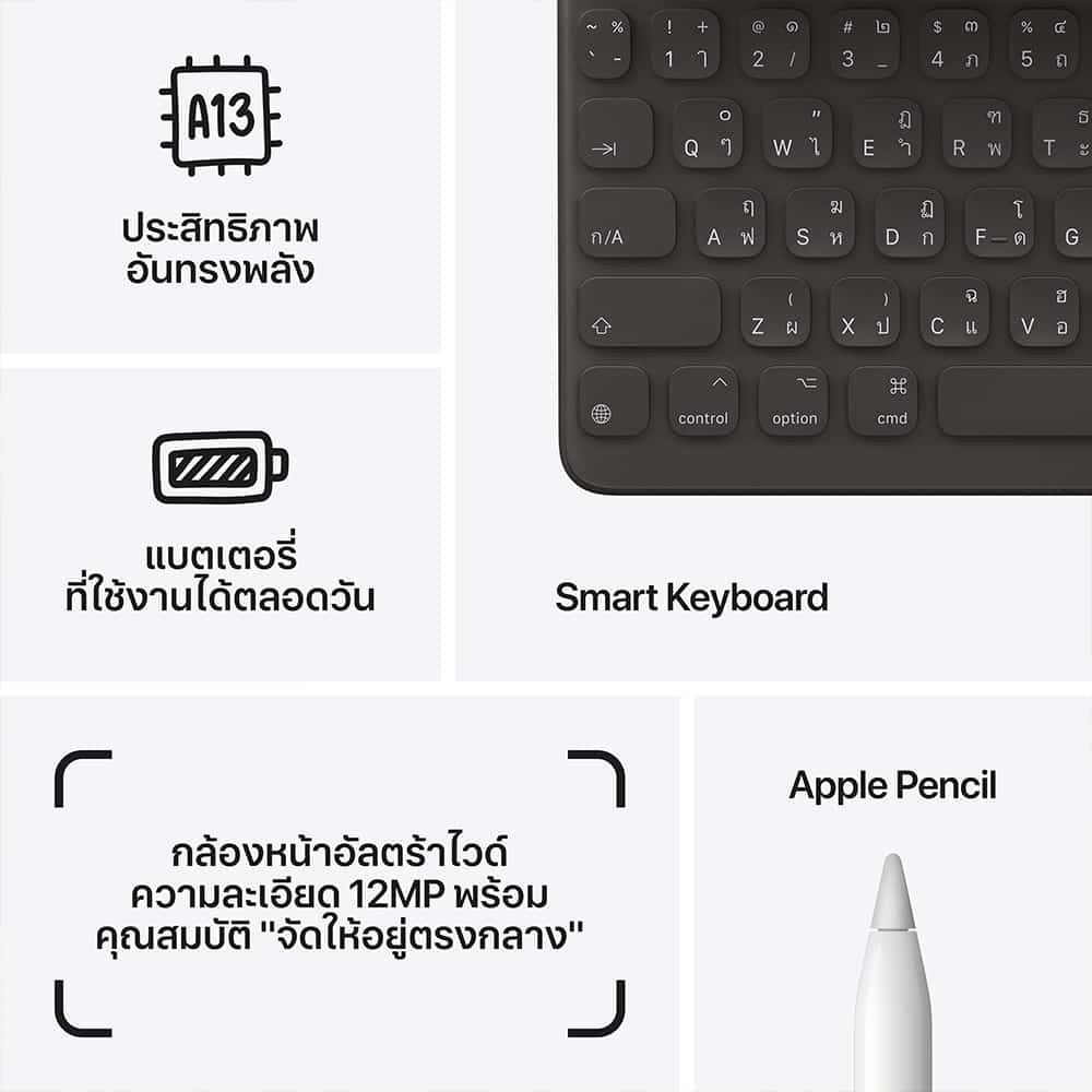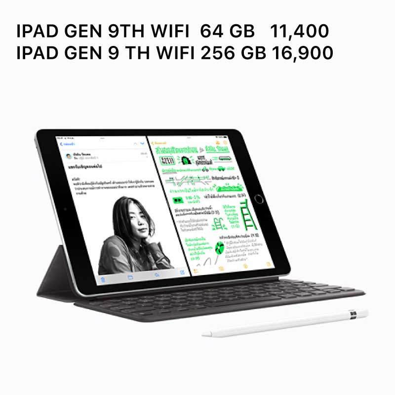ทั้งทรงพลัง ทั้งใช้งานง่าย ทั้งอเนกประสงค์ iPad 9 Gen ใหม่ มาพร้อมจอภาพ Retina ขนาด 10.2 นิ้วที่สวยงาม, ชิป A13 Bionic อันทรงพลัง, กล้องหน้าอัลตร้าไวด์พร้อมคุณสมบัติ “จัดให้อยู่ตรงกลาง” และใช้งานได้กับ Apple Pencil และ Smart Keyboard iPad จะช่วยให้คุณทำสิ่งต่างๆ ได้มากขึ้นในแบบที่ง่ายยิ่งขึ้น ทั้งหมดนี้ในราคาที่ไม่น่าเชื่อ