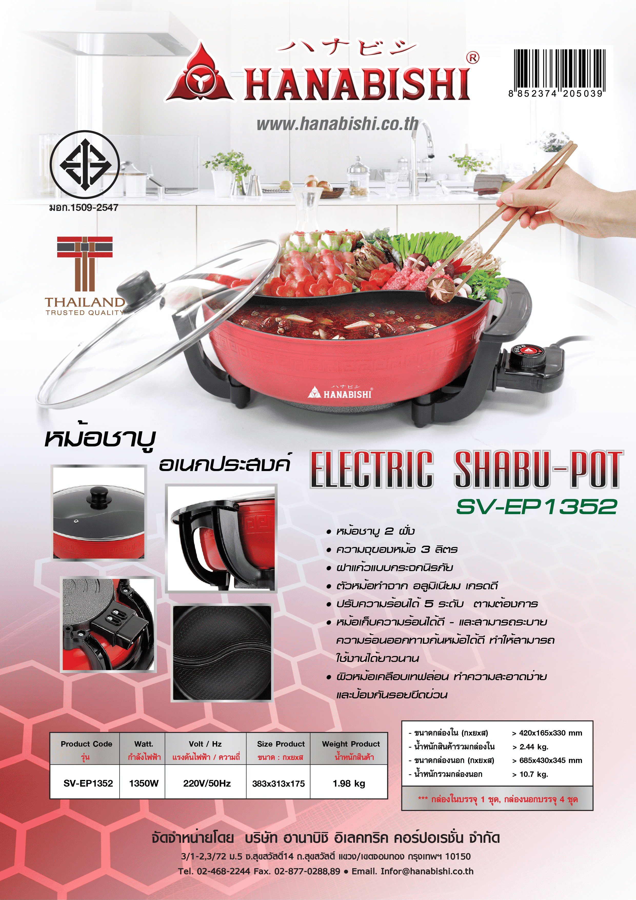 น้ำหนักสินค้า 3.08 Kg กำลังไฟฟ้า 1600w