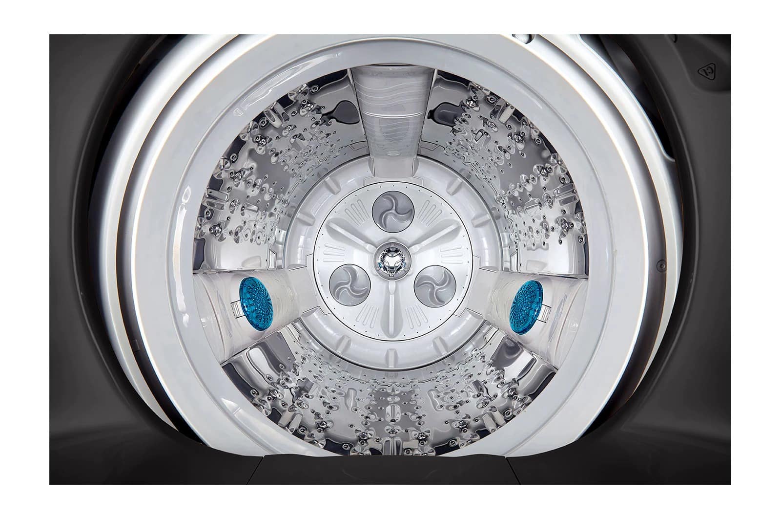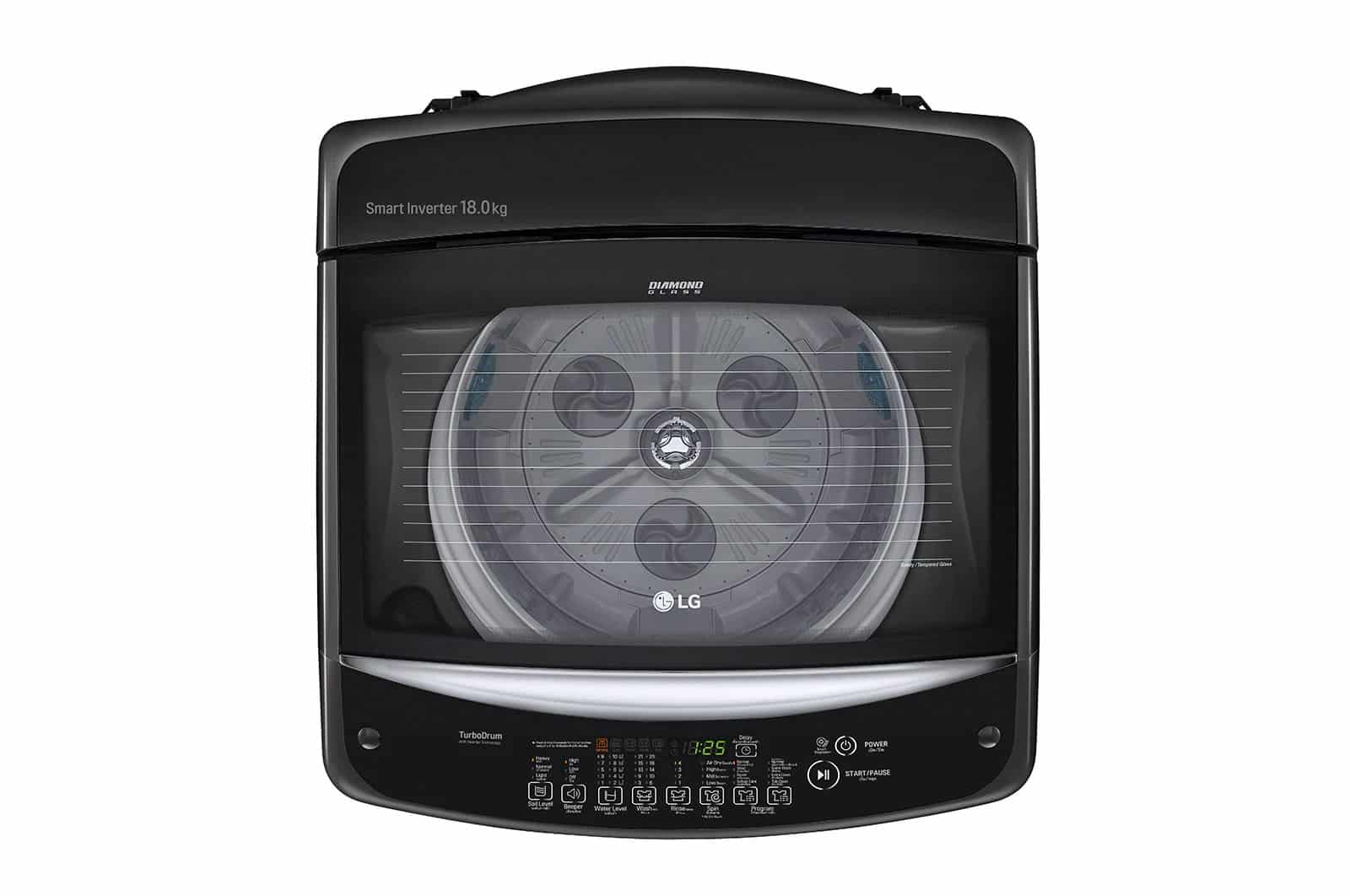 เครื่องซักผ้าฝาบน LG T2518VSAJ 18 กก. สีดำ อินเวอร์เตอร์คุณสมบัติ TurboDrum ถังซักหมุนสวนทางกับจานซัก ช่วยให้ซักสะอาดขึ้น ลดผ้าพันกัน