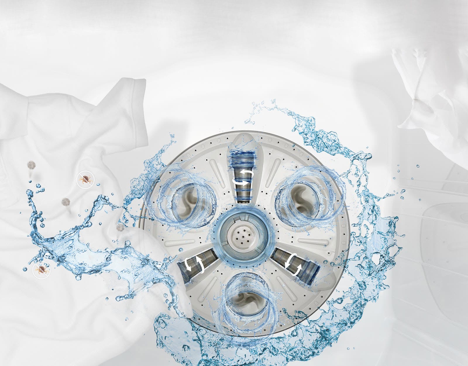 จานซักแบบ Roller Jet ทรงพลังซักเพราะจานซักจะทำการถูผ้าพร้อมกับการหมุนช่วยขจัดคราบสกปรกได้อย่างดี ทำให้ซักผ้าได้สะอาดหมดจดและอ่อนโยนกับเนื้อผ้า