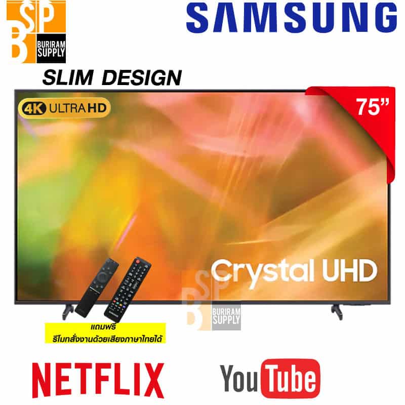 Samsung AU8100 Crystal UHD 4K Smart TV (2021) – ขนาด 75 นิ้ว สีสดสมจริงด้วยเทคโนโลยี Dynamic Crystal Color พร้อมทั้งเทคโนโลยี HDR ขับรายละเอียดภาพทั้งฉากมืดและสว่าง